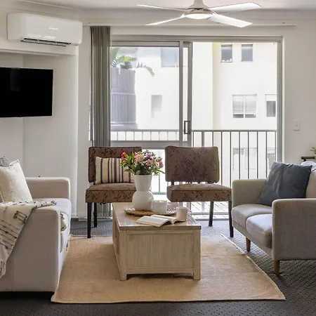 El apartamento Coastal Comfort With Rooftop Pool And Ocean Views Caloundra está situado a 700 m del Parque Clarke Place, y a poco más de 25 minutos a pie del Parque Botánico Ben Bennett.